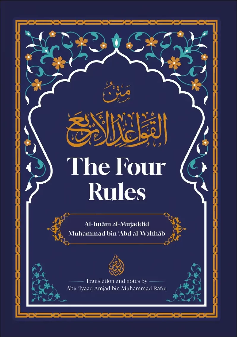 The four rules in this brief treatise are derived from the texts of the Qur’an and the Sunnah and from knowledge regarding the state of the Arabs in the era of the author. They comprise mighty principles and protect the one who memorises them and learns their meanings. Collectively, they clarify the principle regarding Tawhid and the principle regarding shirk such that they can be clearly distinguished. Tawhid is the foundation of religion, and worship without Tawhid is futile.